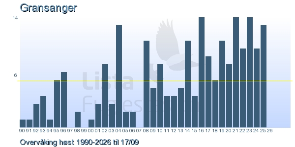 | 6 | Gransanger | Chiffchaff | Phylloscopus collybita | 3 |