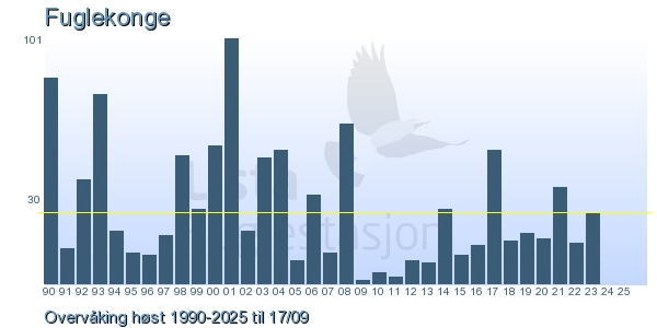 | 8 | Fuglekonge | Goldcrest | Regulus regulus | 7 |