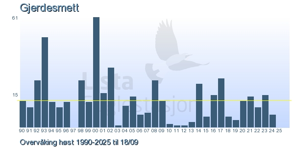 | 8 | Gjerdesmett | Eurasian Wren | Troglodytes troglodytes | 3 |
