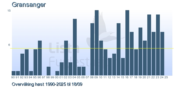 | 5 | Gransanger | Chiffchaff | Phylloscopus collybita | 1 |