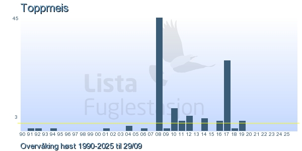 | 3 | Blåmeis | Blue Tit | Cyanistes caeruleus | 45 |