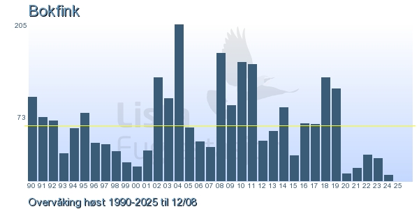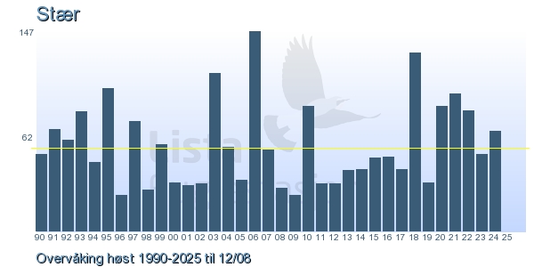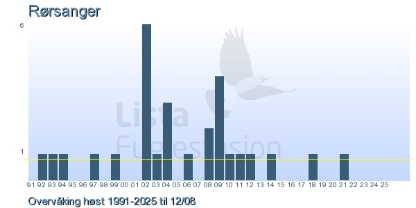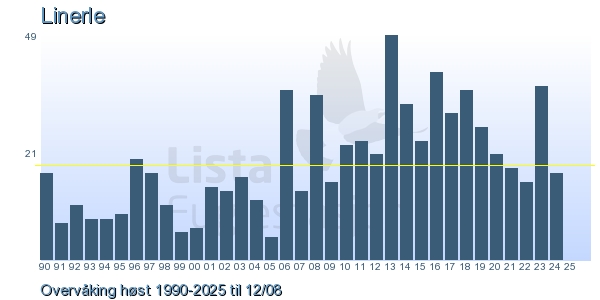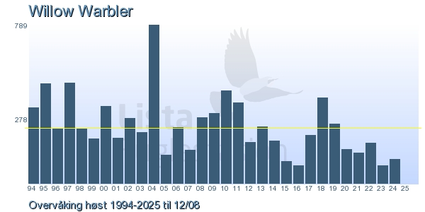 Her ser du resultater av merkeaktiviteten på Lista Fuglestasjon. Du kan velge om du vil ha Dagstall (detaljerte merketall for hver dag), Månedslister (totalsum hver dag for en måned), Sesongdata (status for sesongen), Årslister (artsoversikt for et år) eller Artsliste Lista fuglestasjon (Hele artslisten for merkede fugler på Lista Fuglestasjon).