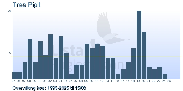 | 12 | Trepiplerke | Tree Pipit | Anthus trivialis | 5 |