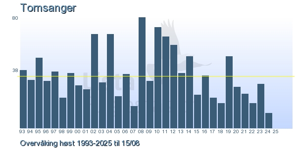 | 2 | Løvsanger | Willow Warbler | Phylloscopus trochilus | 7 |