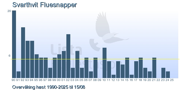 | 8 | Svarthvit Fluesnapper | European Pied Flycatcher | Ficedula hypoleuca | 4 |