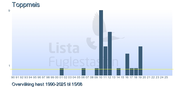 | 1 | Toppmeis | Crested Tit | Lophophanes cristatus | 1 |