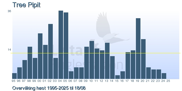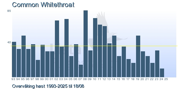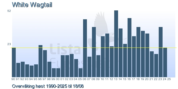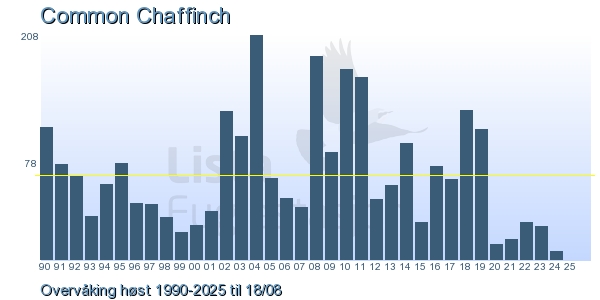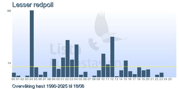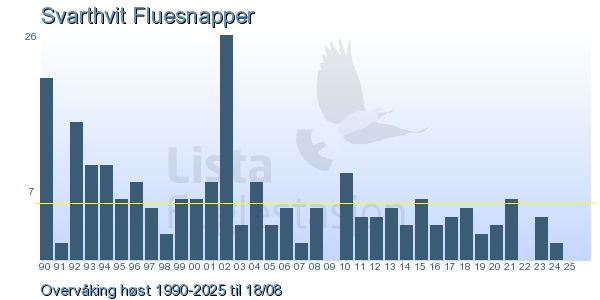 These pages contains the ringing log from Lista Bird Obs. There are several options; Daily log (detailed ringing log for any chosen day), Month log (totals for each day in a month), Season numbers (status for this season), Year list (list of species ringed for any chosen year) or Birdlist Lista Bird Obs. (complete list of species ringed).