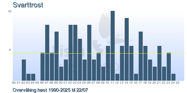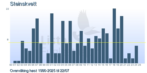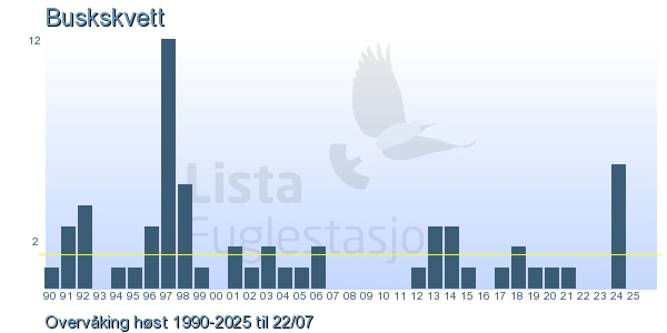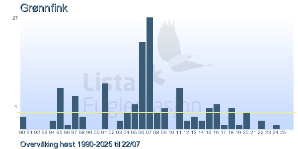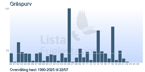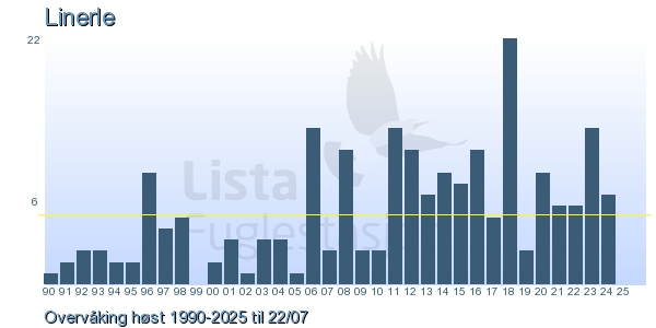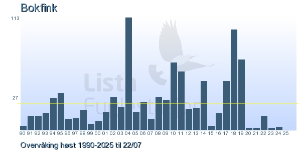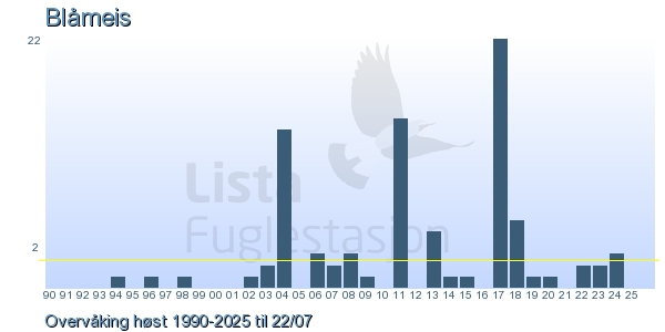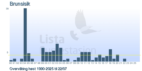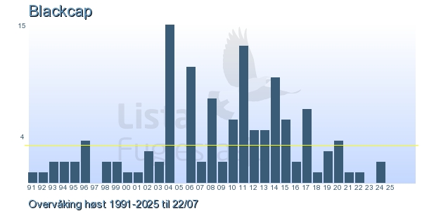 These pages contains the ringing log from Lista Bird Obs. There are several options; Daily log (detailed ringing log for any chosen day), Month log (totals for each day in a month), Season numbers (status for this season), Year list (list of species ringed for any chosen year) or Birdlist Lista Bird Obs. (complete list of species ringed).