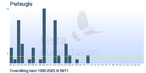 | 1 | Perleugle | Tengmalm´s Owl | Aegolius funereus | 12 |