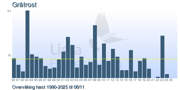 | 9 | Gråtrost | Fieldfare | Turdus pilaris | 1 |