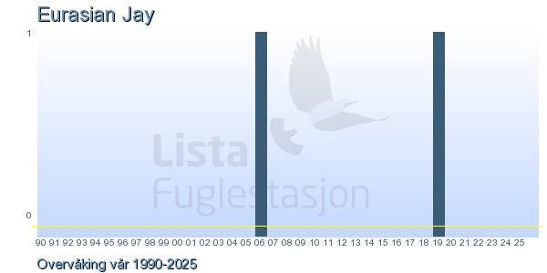 | 2 | Nøtteskrike | Eurasian Jay | Garrulus glandarius | 1 |