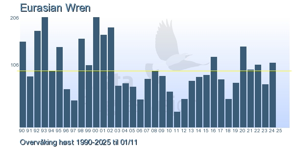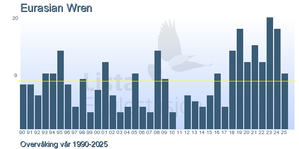 | 1 | Gjerdesmett | Eurasian Wren | Troglodytes troglodytes | 1 |