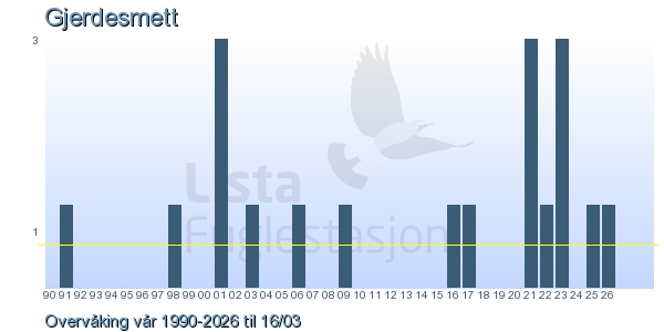 | 2 | Gjerdesmett | Eurasian Wren | Troglodytes troglodytes | 1 |