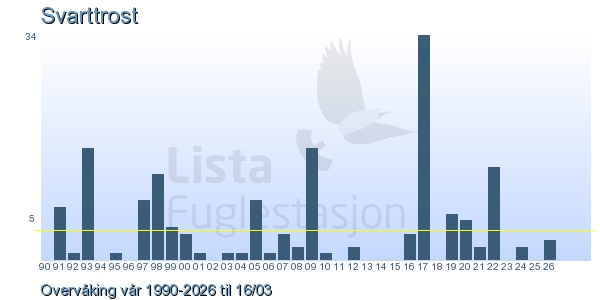 | 3 | Svarttrost | Common Blackbird | Turdus merula | 3 |